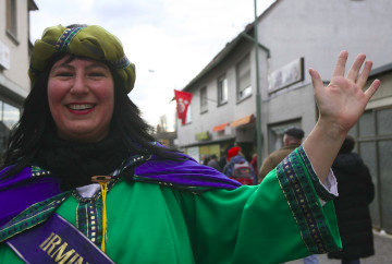 Als „Irminrat die Zweite“ übernahm Kerstin Giesel das ehrenvolle Amt. Tine Giesel, geboren 1979, lebt schon ihr ganzes Leben in Großauheim und engagierte sich hier vor allem im Rahmen des Heimat- und Geschichtsvereins Großauheim, dessen Vorsitz sie damals hatte, später ist sie im IGV und anderen Vereinen aktiv. Beruflich ist sie als Lehrerin an der Friedrich-Ebert-Schule in Mühlheim tätig und unterrichtet dort Englisch und Geschichte. Sie achtete in ihrer Kleidung auf historische Genauigkeit, ihr Gewand war das erste, das der Gewerbeverein bezuschusste.